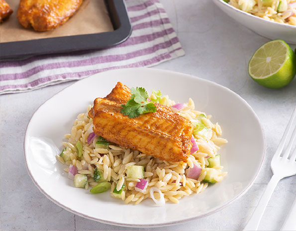 Roasted-Curried-Honey-Haddock-with-Veggie-Orzo-Salad